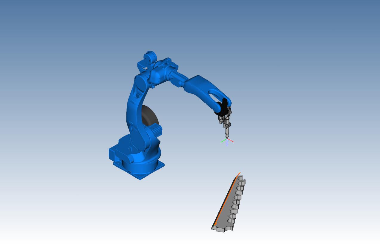 一些原先需要3-5轴数控铣床才能加工的雕刻轨迹,使用机器人也可以做到。本例就是一个简单阳文雕刻的小例子。 本例的做法是将CAM内生成轨迹,通过“导入轨迹”的功能导入到RobotArt软件内,软件会自动将这些轨迹变为机器人的铣削加工轨迹。 后置时,这些轨迹会自动后置为该品牌的后置代码,进而来控制实际机器人进行铣削加工。