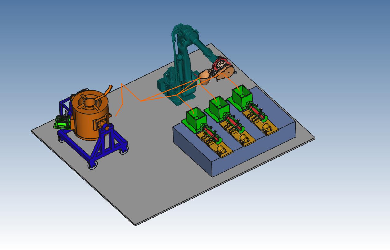 铸造行业,涉及到高温金属溶液的熔融、转移,浇铸等工步,金属溶液高温、易溅出、重量大,对工人的体能要求高,同时极易对人体造成烧伤 乃至致命的伤害。 该领域采用机器人,机器人对高温、重复性、精度高的该类工种很适合,且工作效率高,可以连续24小时作业,综合经济效益很高,适合在铸造领域推广应用。